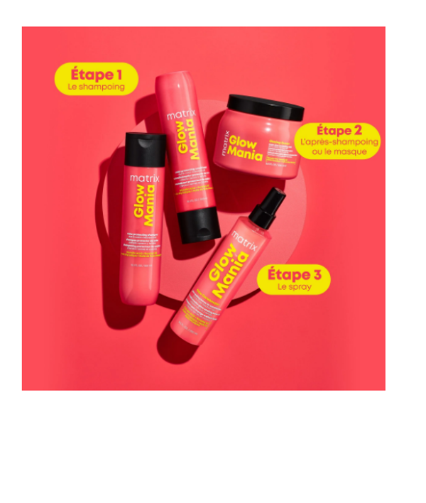 Le masque super lustrant Glow Mania, formulé avec de l'acide glycolique et de l'huile de rose musquée, protège et booste l'éclat de vos cheveux colorés ou ternes . Il enrobe les cheveux pour une meilleure réflexion de la lumière et aide à protéger l'éclat de votre couleur. Les cheveux sont lisses, nourris et sains. les cheveux colorés sont éclatants et brillants.