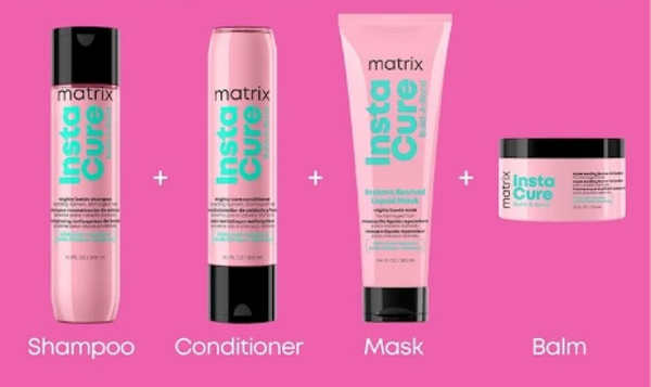 Appliquer après le shampooing renforçateur de liaisons Instacure Build-A-Bond sur les cheveux mouillés, des mi-longueurs aux pointes. Laisser agir jusqu'à trois minutes, puis rincer.